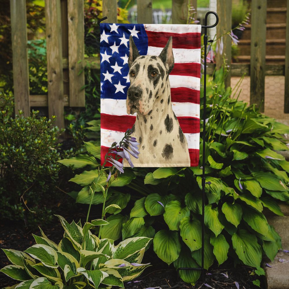 Garden Flag featuring breed specific Great Dane artwork. Enhance the beauty of your garden, patio, or yard with Caroline's Treasures Decorative Garden Flag, proudly made in the USA. Crafted from two pieces of thick, double-sided polyester fabric, this 2-ply garden flag is designed to withstand various weather conditions, making it water-resistant and weatherproof. Featuring correctly readable words on both sides, this garden flag offers a delightful visual experience from any angle. With its heavier weight, it stands out among other garden flags, ensuring stability and durability even in wind, rain, and snow. Measuring approximately 11 1/4 inches by 15 1/2 inches, this flag allows you to personalize your outdoor decor. It comes with a 1 1/2-inch sleeve sewn in, allowing easy attachment to any standard garden flag stand or garden size porch hanger (sold separately). Make a statement in your outdoor space with Caroline's Treasures Decorative Garden Flag, a vibrant and high-quality flag that adds color and personality to your surroundings. Proudly made in the USA, it's a symbol of quality craftsmanship and attention to detail.