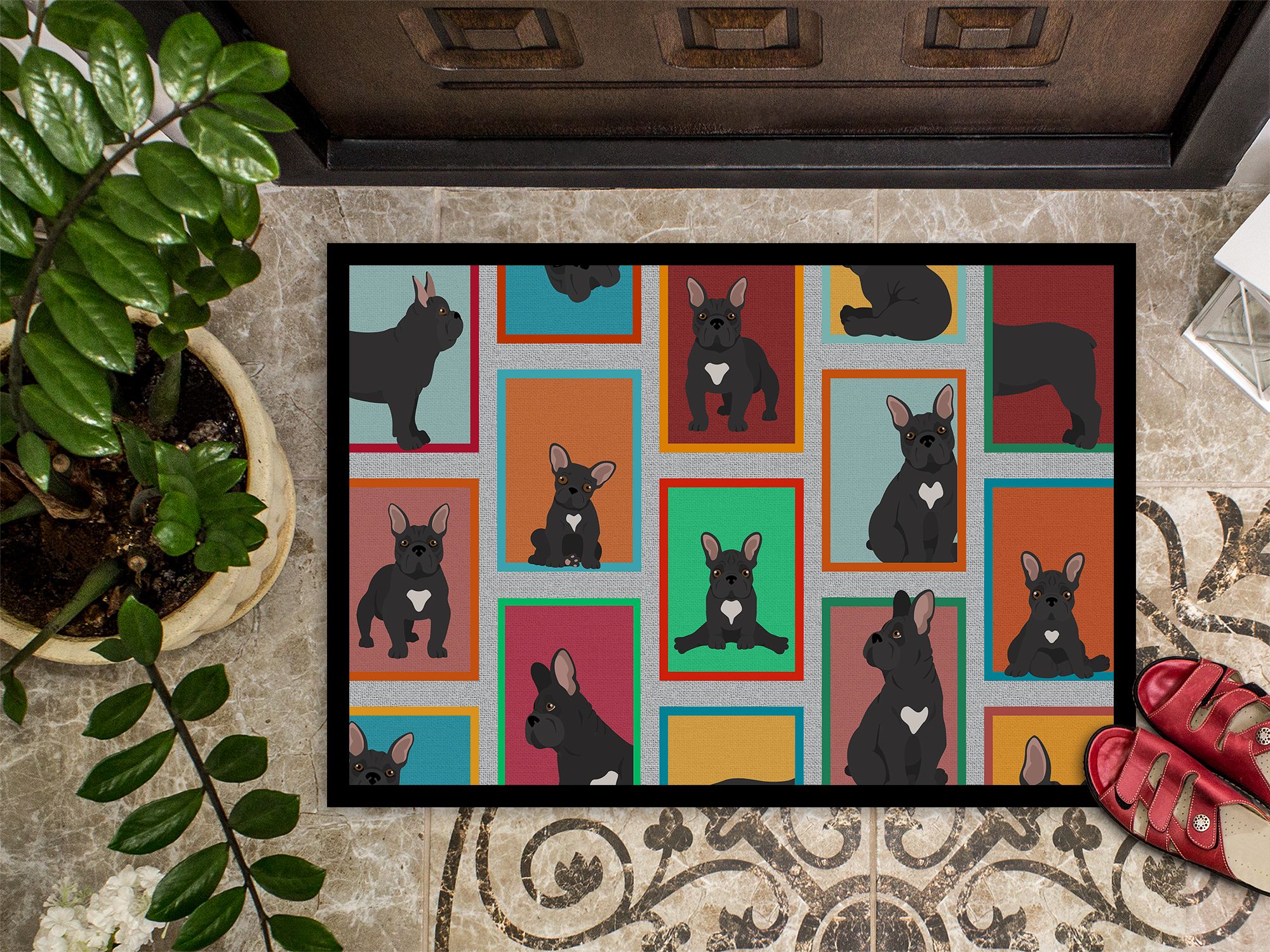 Home > Lots of Black French Bulldog Doormat Front Door Mat Indoor Outdoor Rugs for Entryway, Non Slip Washable Low Pile, 24H X 36W