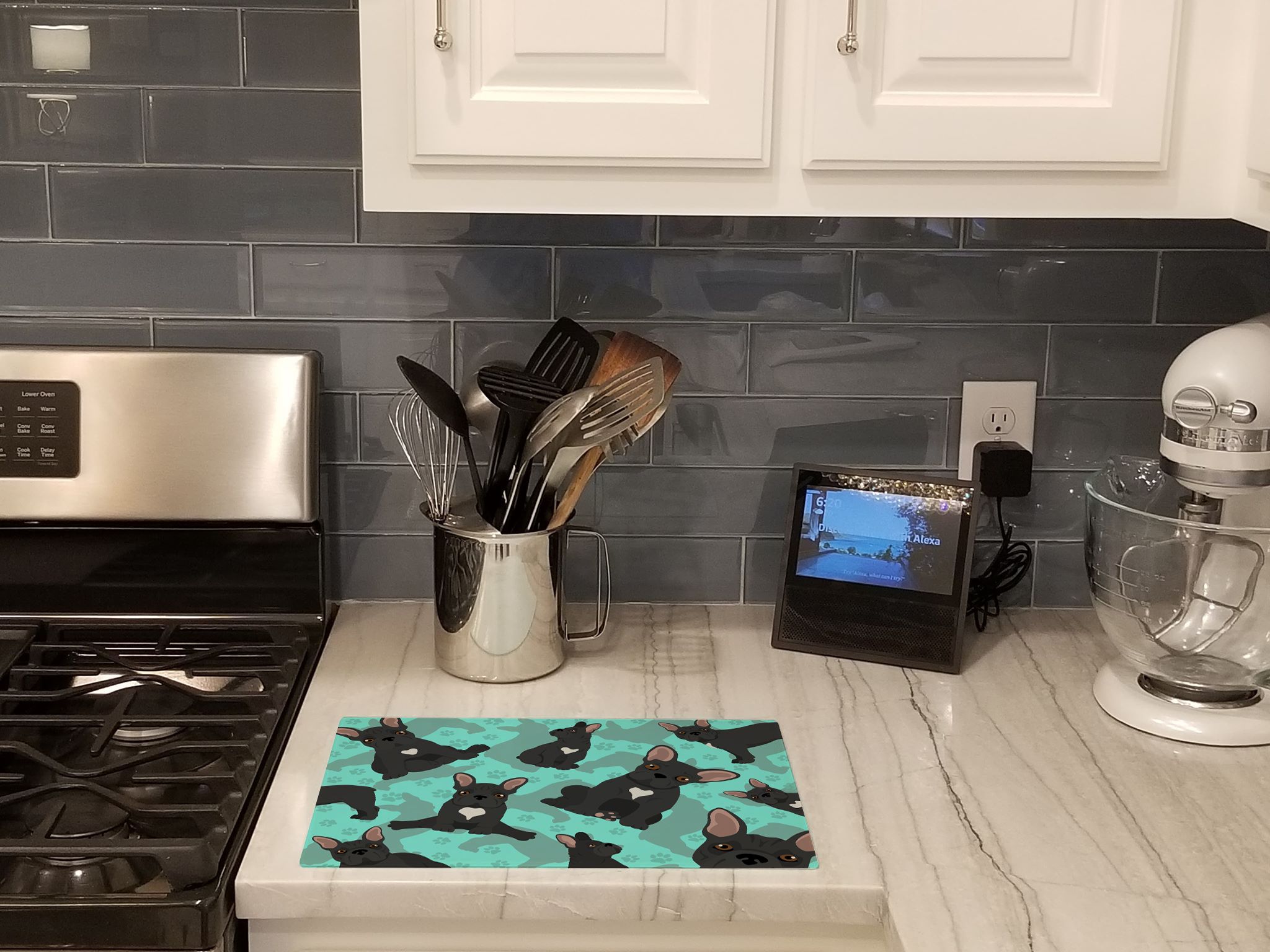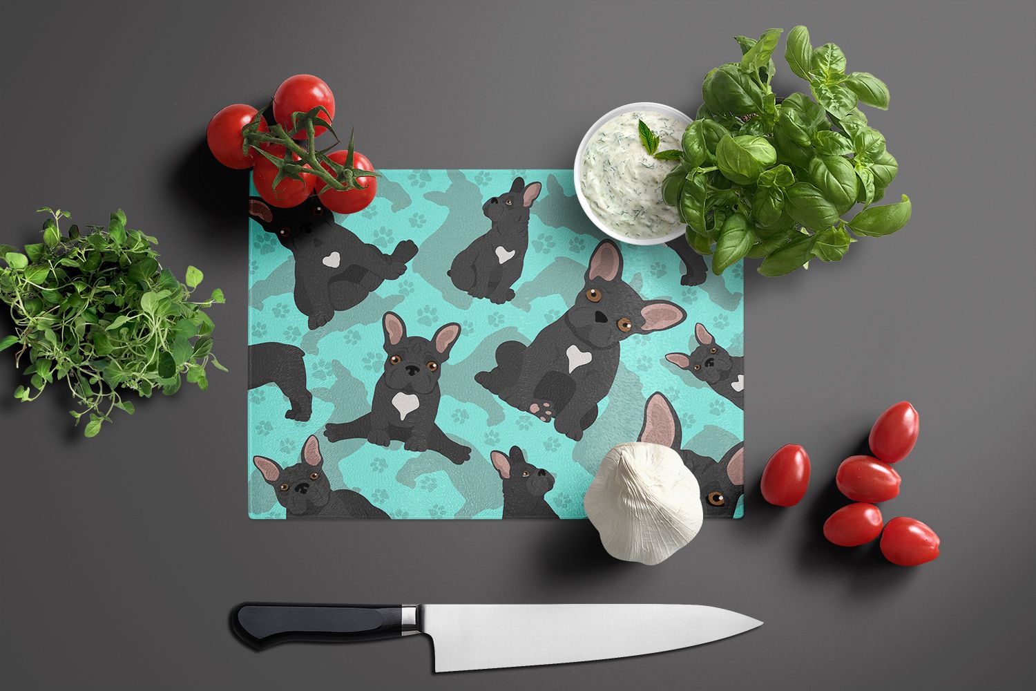Glass Cutting Board featuring breed specific French Bulldog artwork. Introduce your kitchen to the vibrant, large Decorative Glass Cutting Board from Caroline's Treasures. Crafted from resilient tempered glass, this board is not only a utilitarian necessity but also a colorful art piece. With its generous dimensions of 15 inches in height and 12 inches in length, it offers ample space for all your cutting needs. Every piece showcases captivating artwork from distinguished artists, bringing an aesthetic edge to your kitchen. Beyond its attractive design, this cutting board ensures your countertop stays pristine and unscathed, owing to its heat-resistant properties. Engineered with user convenience in mind, it features non-skid feet for stability, and rounded corners for additional safety. Its robust construction renders it virtually unbreakable, guaranteeing longevity. The board comes with protective feet bumpers, maintaining its position during use. This product is recommended to be hand washed only. Proudly printed and assembled in the United States, this cutting board exemplifies superior craftsmanship. With Caroline's Treasures' Decorative Glass Cutting Board, you're investing in a blend of functionality and artistic flair.