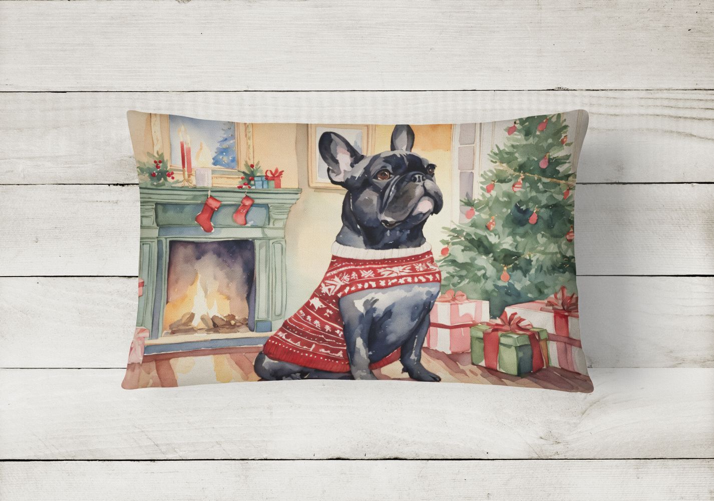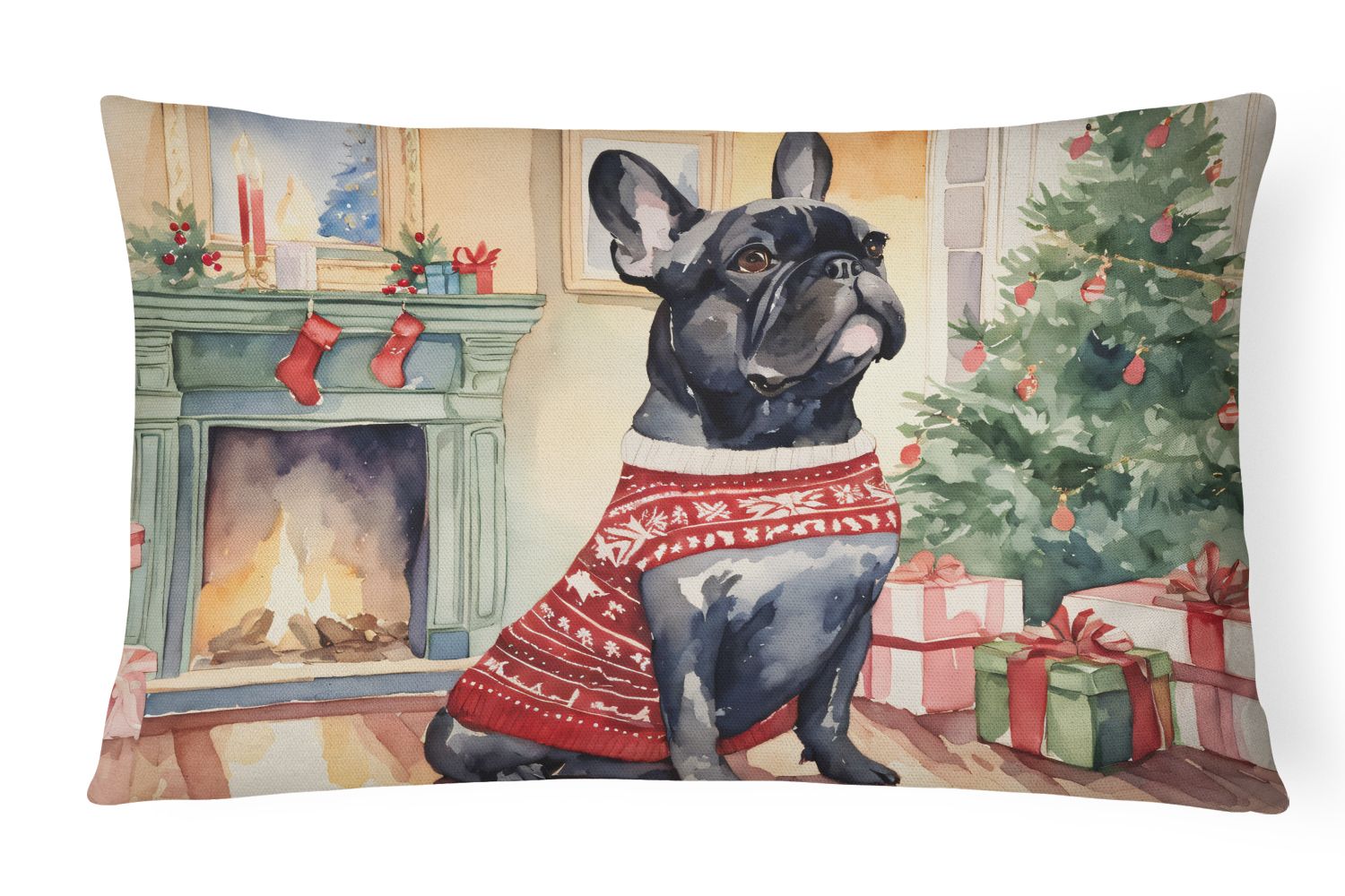 Throw Pillow featuring breed specific French Bulldog artwork. Celebrate Christmas with this Christmas Pillow. Embrace the fusion of comfort and style with Caroline's Treasures Fabric Decorative Pillow. This 12x16 inch outdoor pillow is designed to complement your patio furniture, adding a splash of color and artistry to your outdoor setting. Constructed with a 100% Polyester Fabric pillow sham filled with a plush pillow form, this cushion is as comfortable as it is durable. Our outdoor pillow utilizes a novel fabric, meticulously woven for enhanced water resistance. This soft canvas material is equally suited for your indoor couch as well as outdoor settings such as the patio, porch, or veranda. To ensure enduring vibrance, we employ colorfast dyes resistant to fading even when subjected to weather elements. The making of this pillow involves the delicate sewing together of three fabric pieces to create a sham, into which a polyester insert is carefully placed. The result is an overstuffed pillow that tenaciously holds its shape. With both the sham and the pillow insert crafted in the United States, these handmade pillows are a testament to superior local craftsmanship. Note that as these pillows are handmade, sizes may slightly vary, enhancing their unique appeal. Enjoy comfort in style with Caroline's Treasures Fabric Decorative Pillow.